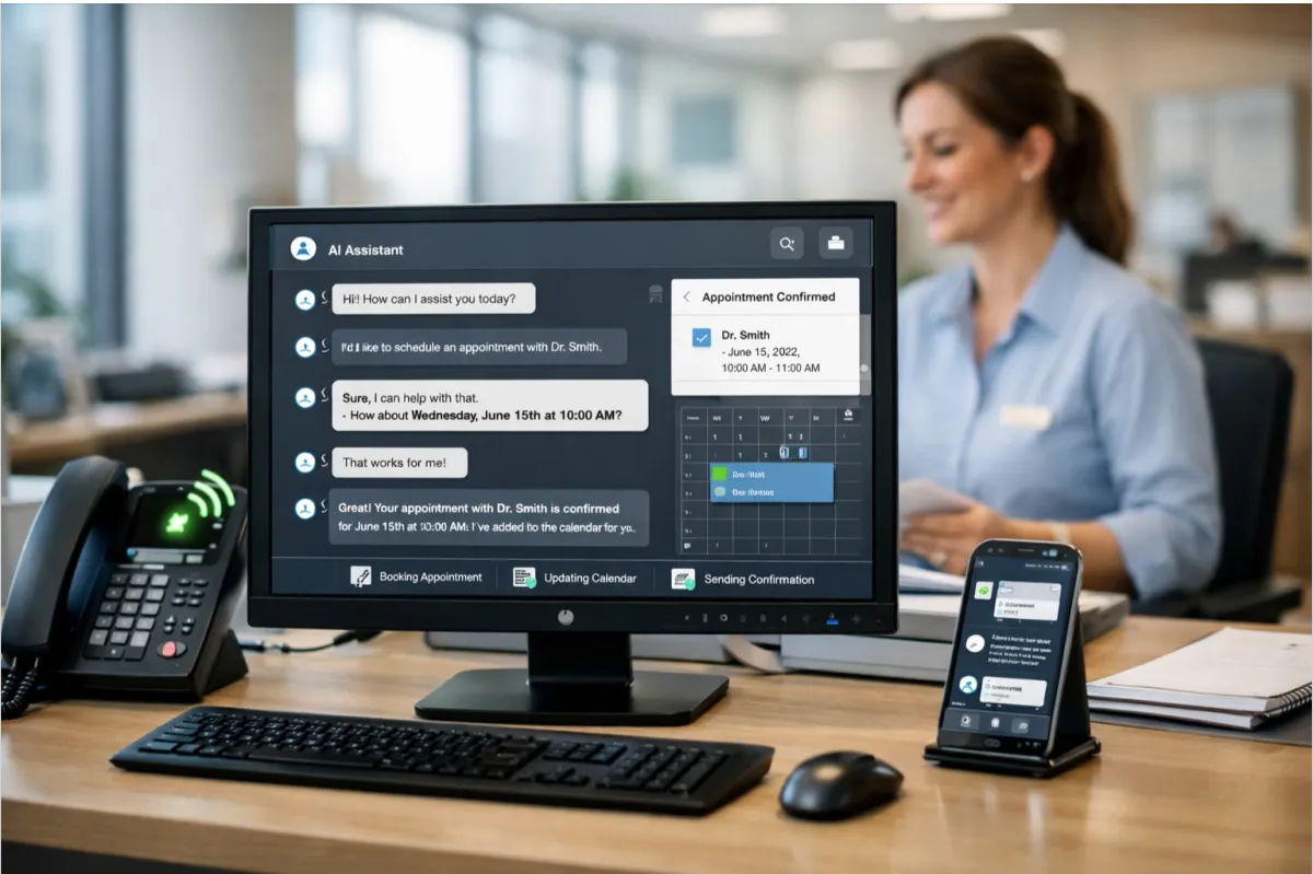 AI-driven chat and scheduling systems that handle inquiries, appointments, and basic customer interactions automatically.